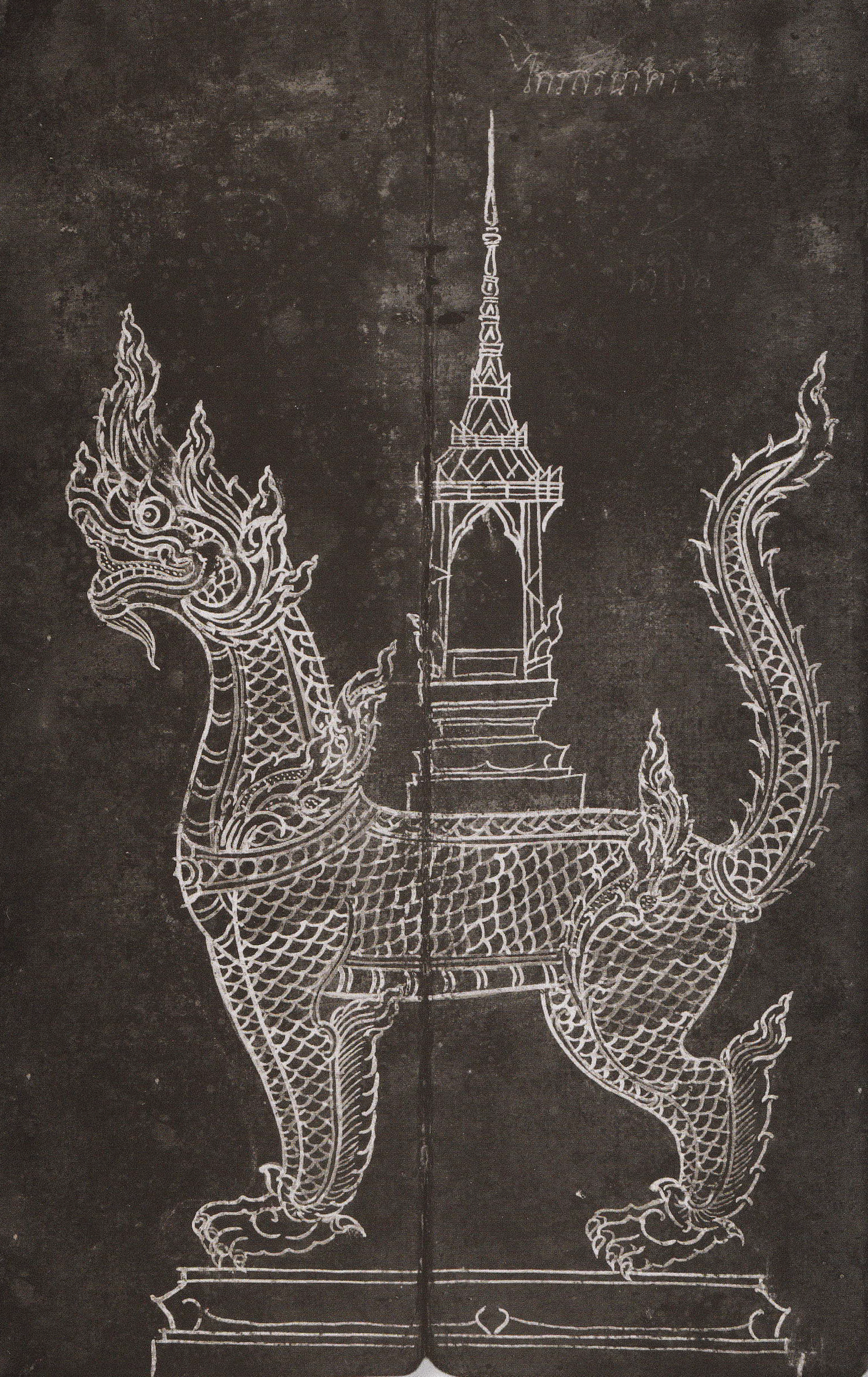 - ไกรสรนาคา เป็นสัตว์ที่มีลักษณะผสมระหว่างสิงห์และนาค มีส่วนหัวและหางแบบนาค มีส่วนลำตัวแบบสิงห์ ตามตัวมีเกล็ด ตัวสีน้ำเงินอ่อน