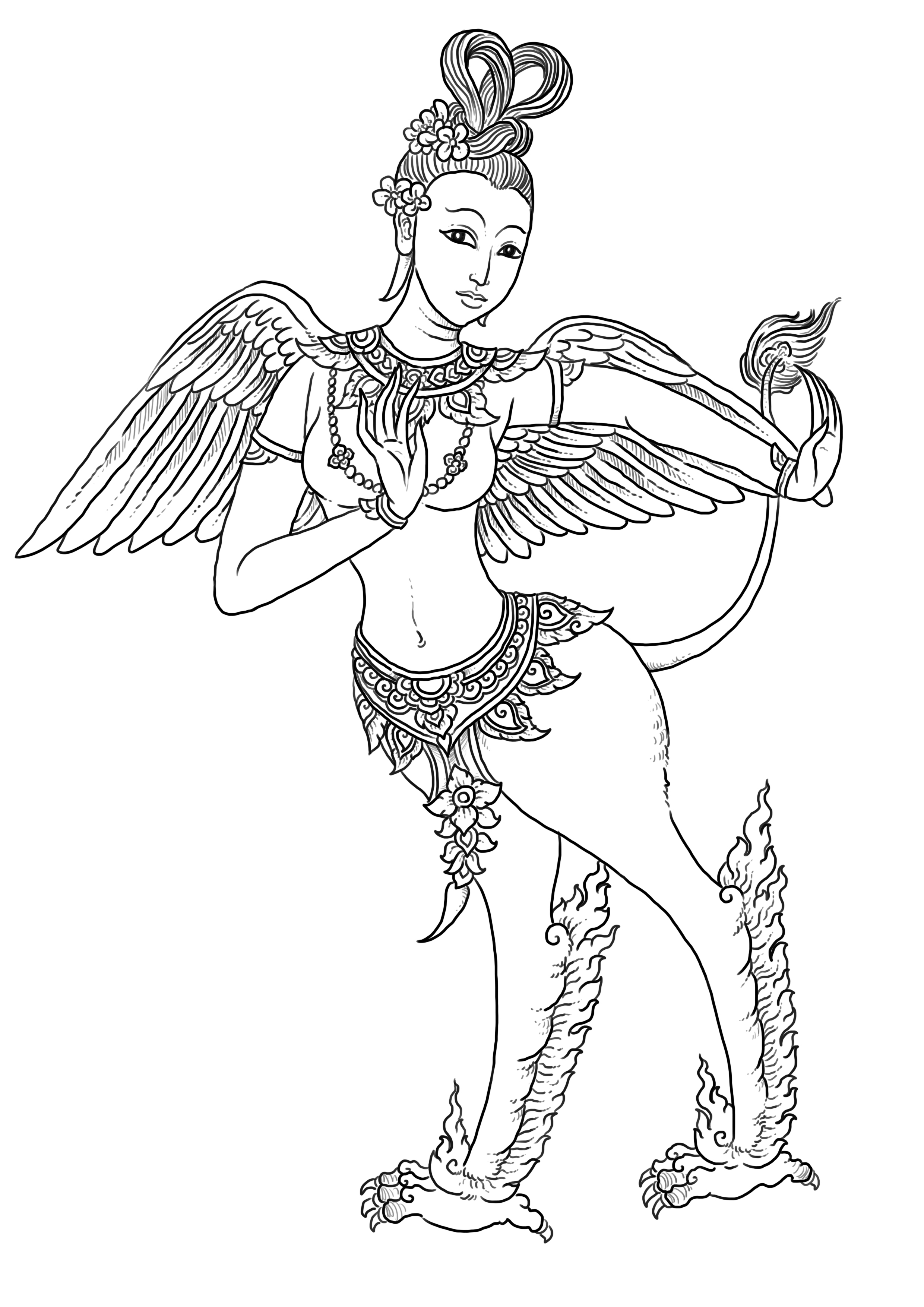 - นรปักษาไกรสร มีลักษณะลำตัวท่อนบนเป็นมนุษย์ท่อนล่างเป็นสิงห์และมีปีกเหมือนนก