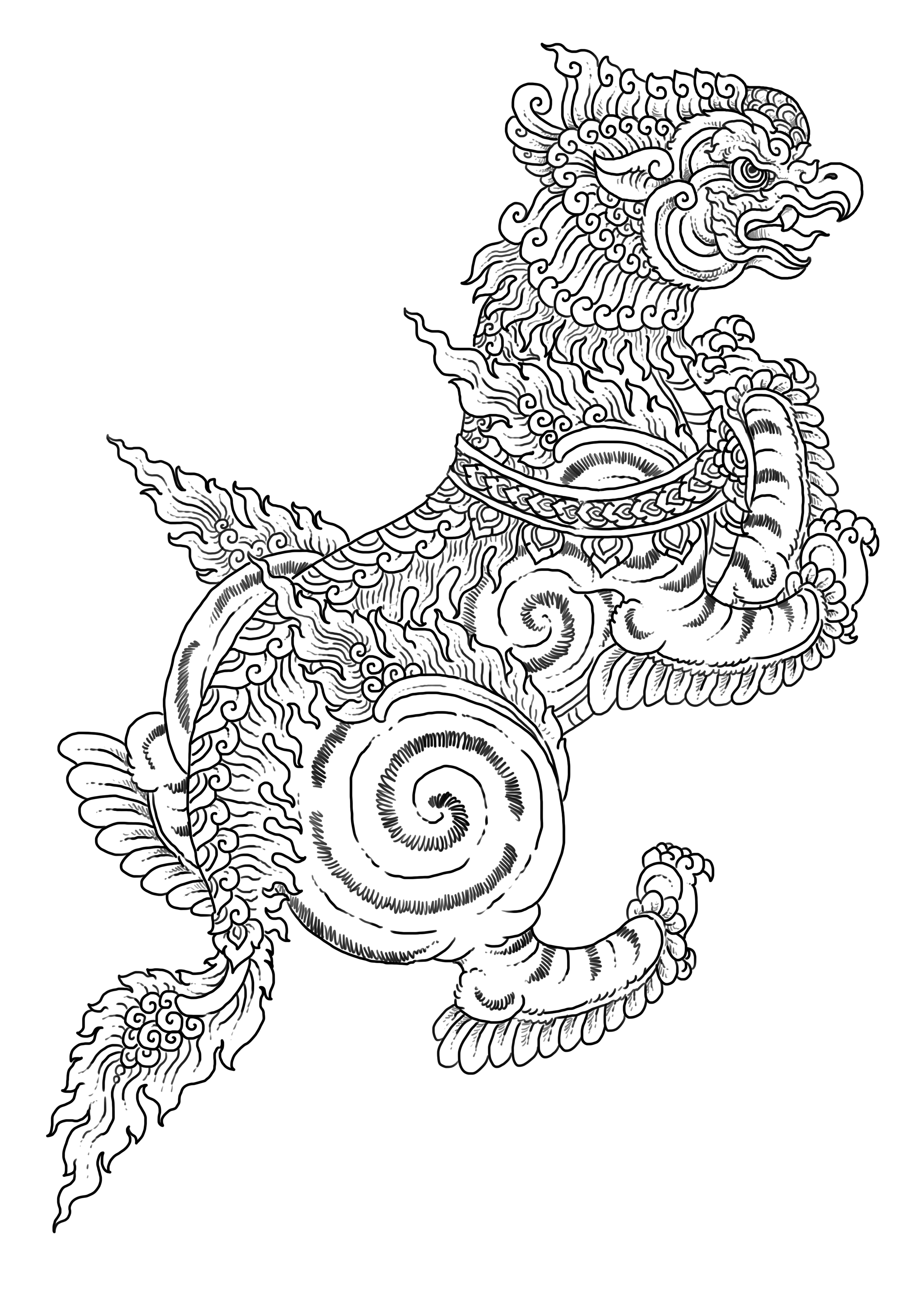 - ปักษิณสีห์เป็นสัตว์ที่มีรูปร่างเป็นสิงห์ มีหัวเป็นนกไม่มีปีกและมีพละกำลังมาก