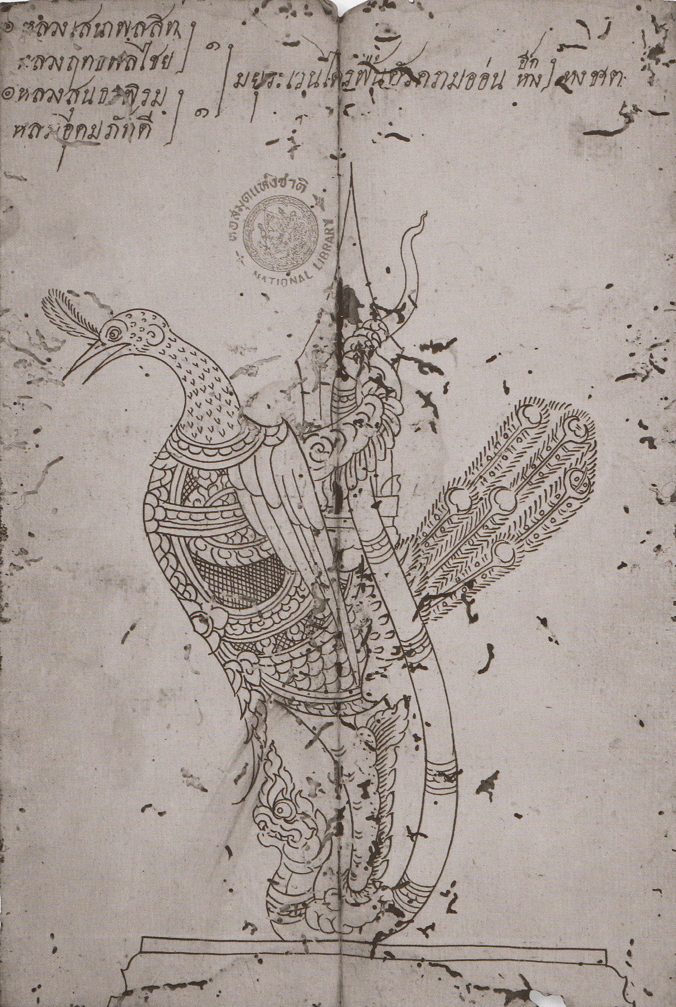 - มยุรเวนไตย เป็นสัตว์ที่ผสมระหว่างนกยูงและครุฑ มีส่วนหัวเป็นนกยูง มีส่วนลำตัวแบบครุฑ และมีหางแบบนกยูง ตัวสีครามอ่อน ปีกและหางมีสีหงชาด